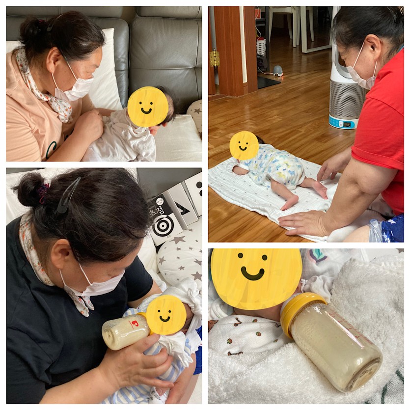 장마철이라 덥고 습한 날씨에 땀을 흘리시면서 매일 목욕을 시켜주셨습니다. 목욕을 하기 전 준비해야 하는 사항들도 알려주시고, 목욕할 때의 자세와 순서, 방법 등 아주 유용한 목욕 팁을 전수받았습니다. 나중에 혼자 목욕을 시키면서도 어려움이 없을 정도로 많이 배웠습니다. 항상 아이에게 부드러운 말투로 설명을 해주시고 목욕을 하고 난 후에도 로션과 비판텐 크림을 꼼꼼하게 발라주셨습니다.
